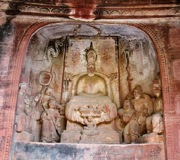 (石钟山石钟寺区第1号石窟“南诏第六代国王异牟寻议政图”来源:名城申报材料)