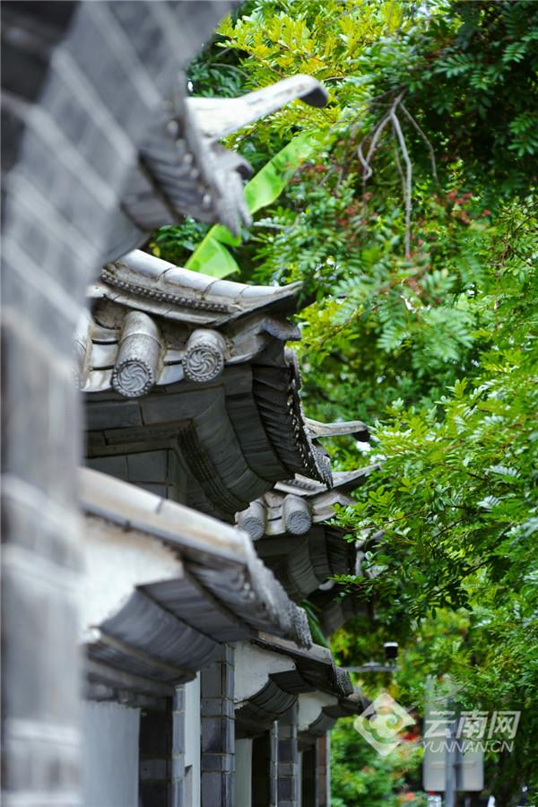 (绿意和修缮后的房檐青瓦使得古城更具特色)
