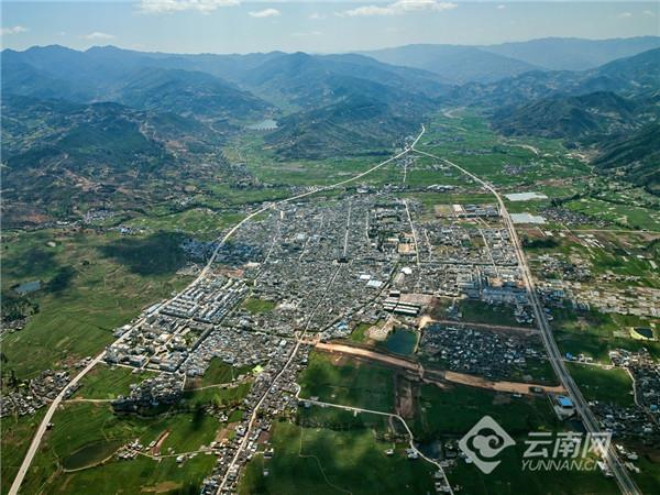 (巍山县城鸟瞰图,历史城区占据了较大面积)