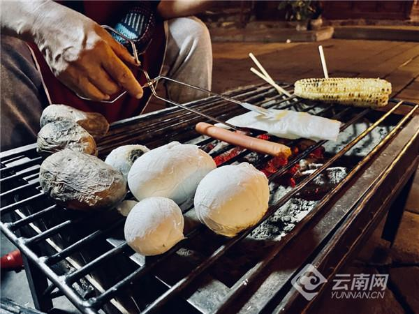 城楼内,街区人来人往,早晨冒着火巴(pa)肉饵丝、一根面和过江饵丝香气的早餐店门口,夜里又多了几处烤着饵块的小摊,摊主毫不吝啬地将烟火气分享给来往游人。