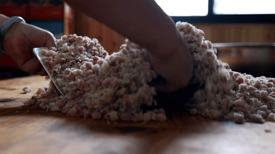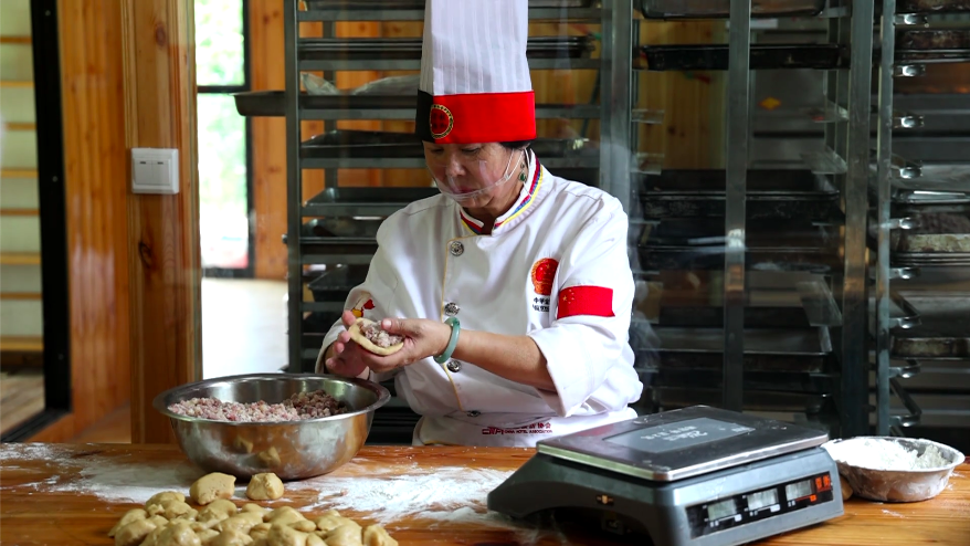仇亚雄:从和面开始,每个步骤都不能松懈,特别是和面的用水量,水多一斤半斤都不行,它是有绝对比例的,一点不能马虎。还有一个是分面团的时候,每个面团的重量也需要准确。我做了几十年糕点,我的手就是称重器,比机器快。