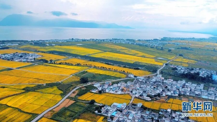 (航拍洱海畔的金色稻田 杨景浩 摄)