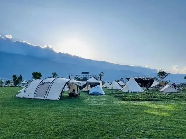 在苍海高尔夫球场度假村内,城市精致露营“在野·轻和露营”坐落其中。草地、白沙、帐篷……被苍山的绿色环绕时,抬眼就是湛蓝的洱海。一起躺在被山海围绕的草地天幕下饮酒畅谈,放下压力从生命和彼此身上寻找一切存在着美好和善良的东西,从大自然中认识不一样的风景、朋友和情感中获得意想不到的惊喜生活,和“在野”一起寻觅那颗代表自由精神的星。