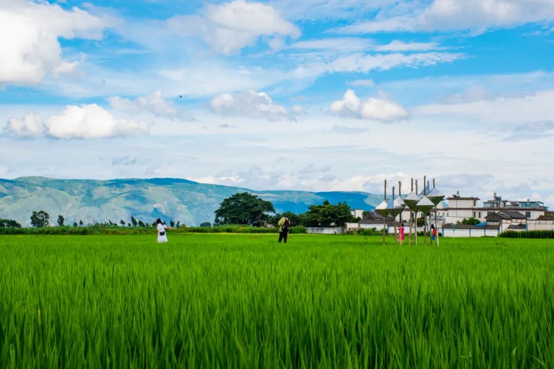 喜洲古镇的农田就分布在房子周围,这里的人根据二十四节气,轮番耕种,所以夏绿秋黄是这里不变的色彩。