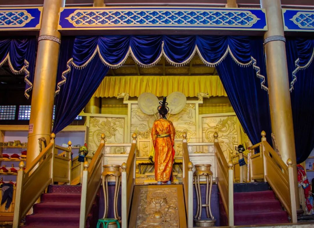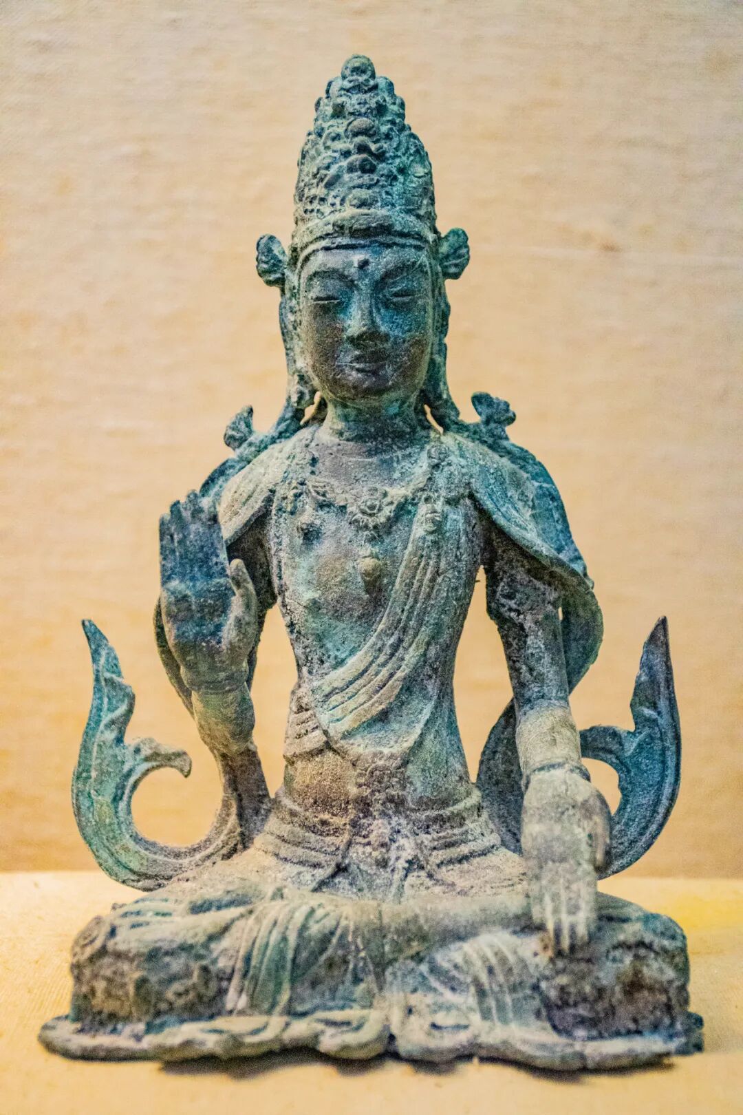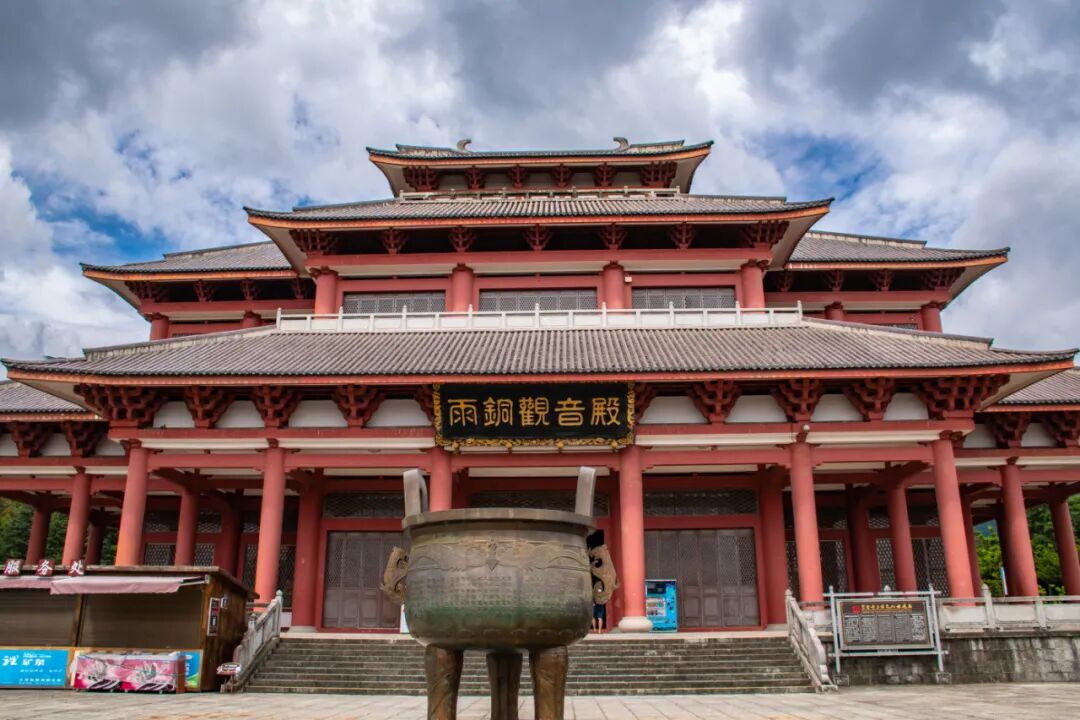 雨铜观音像作为五大重器之一,拥有独立的殿阁,非常气派,在正殿里就摆放着雨铜观音像,面容栩栩如生,慈眉善目,身形风姿绰约,展现了中国古典简约之美。