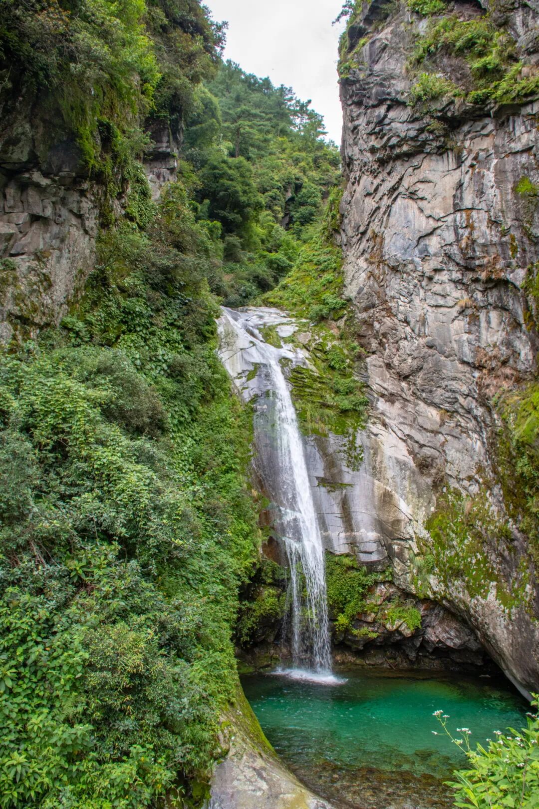 山涧里的小溪汇聚在一起,在陡峭的悬崖之间形成大大小小的瀑布、泉潭,清碧溪和七龙女池就是其中最具代表性的八个,形成一个泉池就会在泉池的上方出现一条瀑布。