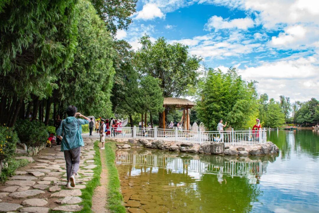 旅人在湖边漫步,在泉边合影留念,在蝴蝶博物馆中想象“南诏蝶会”的盛大,在蝴蝶大世界追蝴蝶。