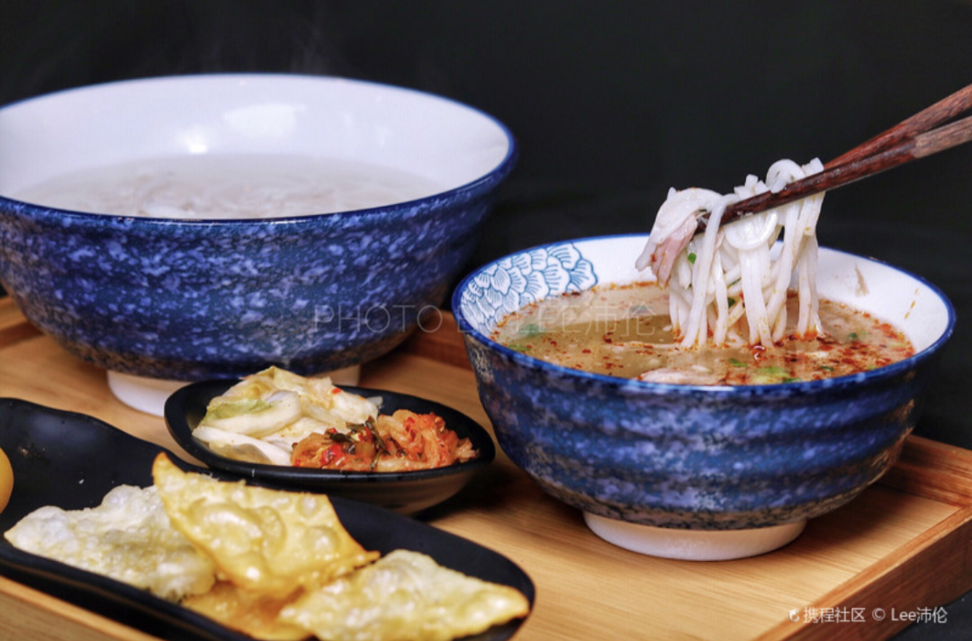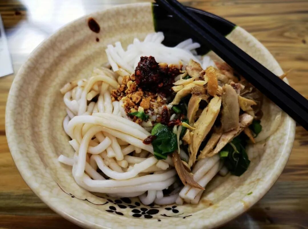 来大理,一定不要错过大理古城的凉鸡米线,酸甜适度的中庸口感成就了它的高人气!将做好的白斩鸡撕成条条,拌着米线入碗,店家自调的卤汁混着梅子醋,再放入各种辅料、花椒油、油泼辣子、熟核桃等,一晚特色大理凉鸡米线就呈上来啦。让人垂涎欲滴,入口酸甜爽滑,开胃解暑,妙不可言。