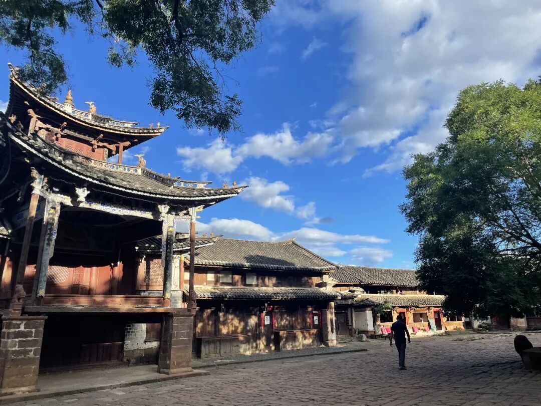 沙溪是一个集寺庙、古戏台、商铺、马店、开阔的红砂石板街面、百年古树、古巷道、寨门于一身的千年古集市,是过去茶马古道上最后一个大驿站,各种马队都要在这里休息打尖儿,以准备接下来的艰苦行程。因此这里曾经非常繁茂,几乎每家每户都有值得骄傲的家史,也传承下了不少历史和文化。时至今日,村里依然有各种牛人,民间书画家、木雕艺术家、民间音乐家……只要你稍有留意,你会发现咖啡馆儿里的牌匾、农户自家的木雕镂空门窗、还有石桥上传来的《二泉映月》,都是村里农民自己的作品。