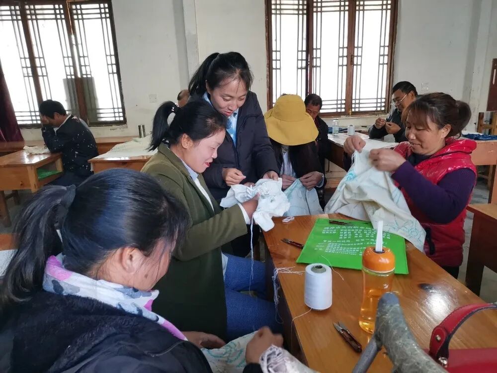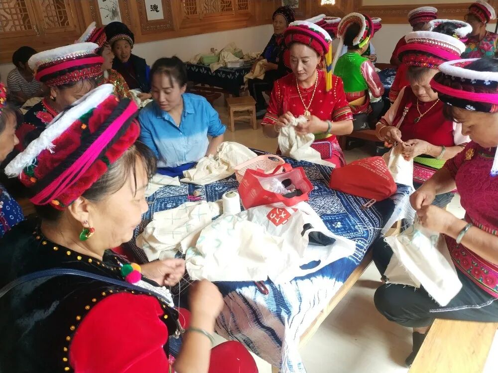 张翔家的白族小院是爷爷张仕绅的故居,她把传习所开在家里,每年都会为村里的妇女开展免费培训,还会到周边村子进行宣讲。张翔还会让参与过培训的妇女参与到订单和成品的制作,将染好的布料发给她们进行扎花。现阶段受疫情影响,参与制作的妇女达200多人,平均每人每月收入2000到2500元。