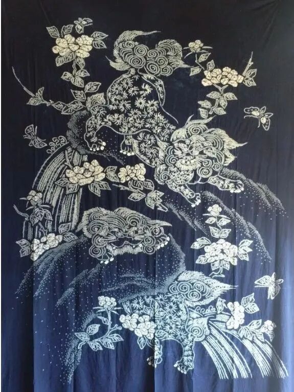 在张翔家楼上展厅,悬挂着的《麒麟图》,是爷爷、父亲一起设计,由母亲、张翔和一位阿姨一起扎花染成。整幅作品细腻生动,富于变化,是不可多得的传世之作。当时,一共扎染了三件,卖给美国客人一件,作为展览送给璞真扎染博物馆一件,自留一件。