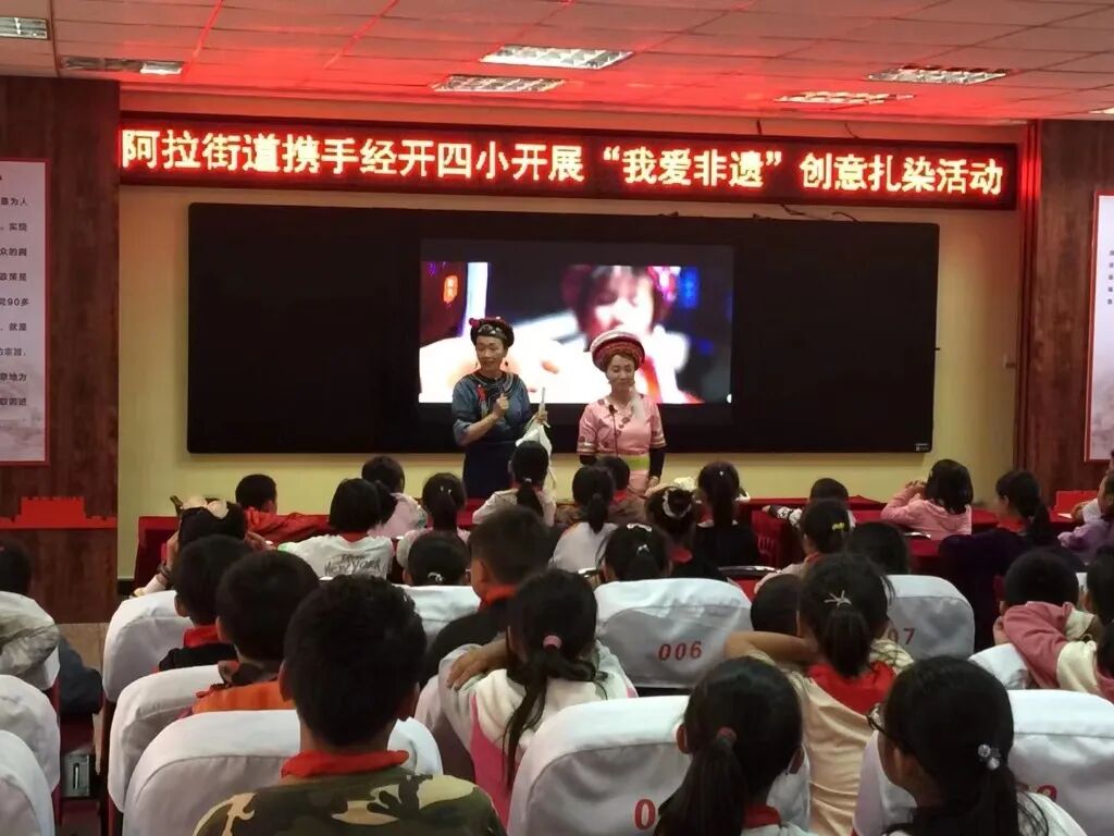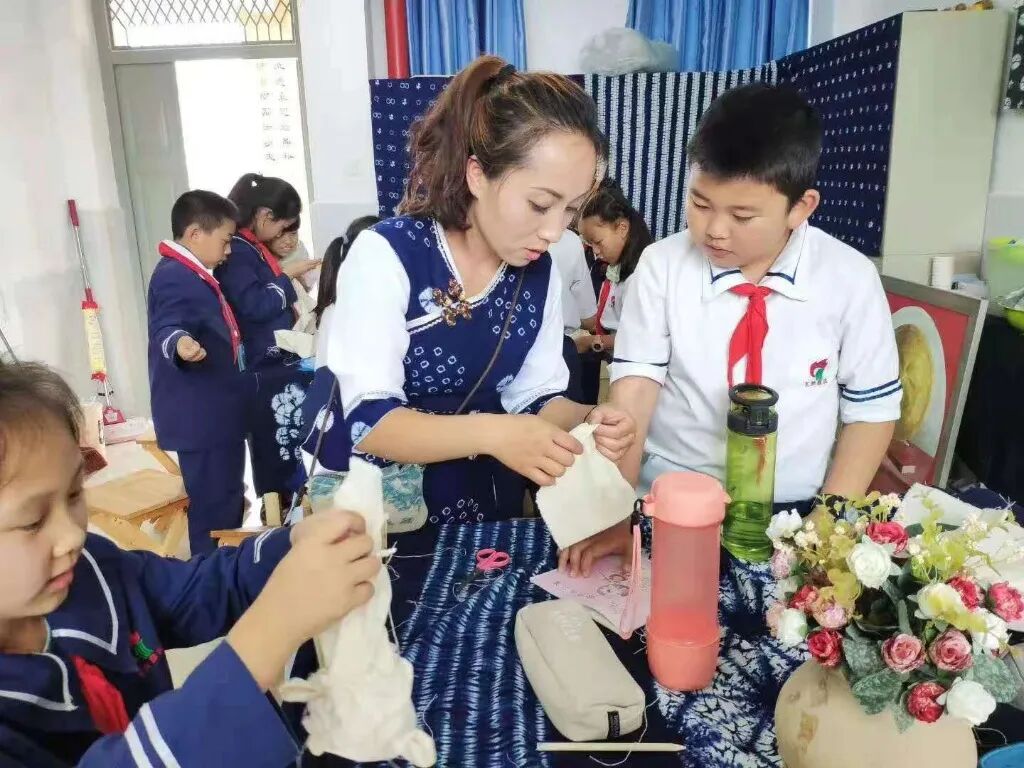 张翔还被下关四小聘为扎染传承导师,每年还会免费到上关完小、长育村完小、银桥完小、经开四小等小学开展宣讲活动。“扎染为什么是蓝白色的,除了象征着蓝天白云,还代表着做人要清清白白,做事要明明白白。”将扎染技艺传授给下一代的同时,她还会向学生们讲述扎染深层的意义。