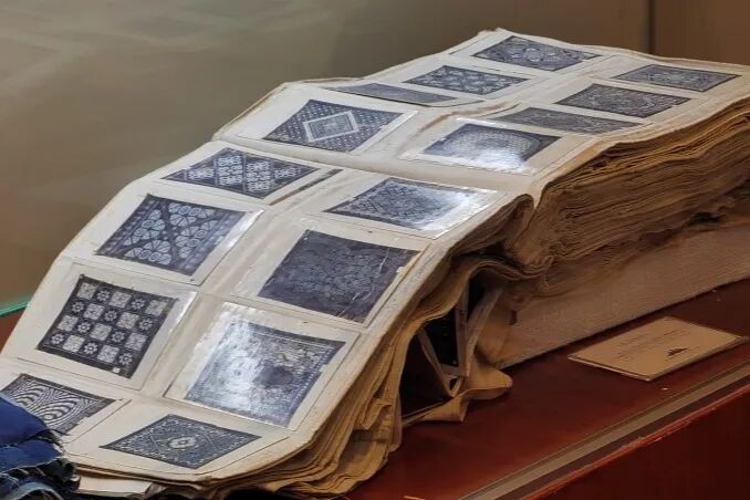 “爷爷的设计有一万多个图案,目前我们整理出来两千多个,村里扎花人能扎出来的有一千七百多种,还有剩下的九千多种都是很繁琐的。因爷爷留下的图谱都是照片,要将它们放大、绘图、制模,最后扎花、浸染。其中比较复杂的针法,就和村里的扎花能手一起研究、复原。”张翔说。
