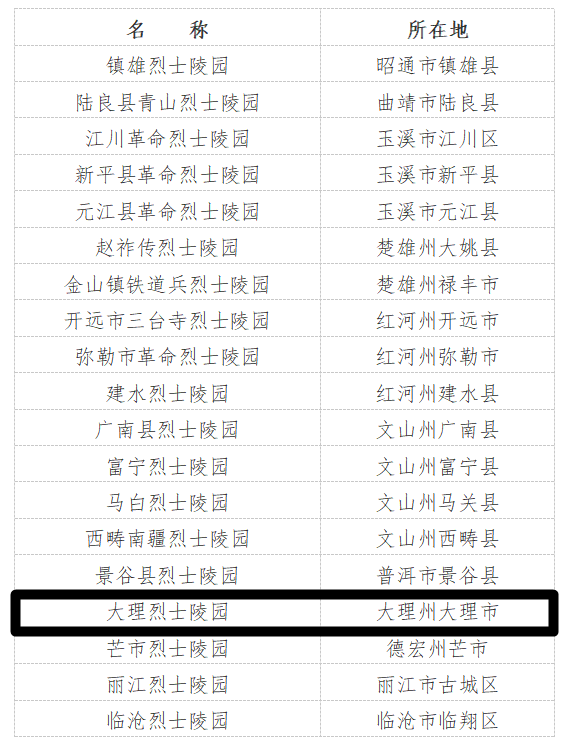 为第二批省级烈士纪念设施大理烈士陵园入选