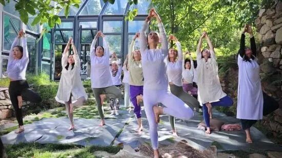 她现在一年中有一半时间在凤羽,给来自全国的学生教授瑜伽、冥想和音疗的课程。