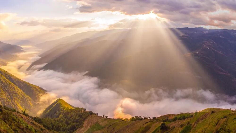 近日,云南省大理白族自治州南涧县小湾东镇出现云雾景观。
