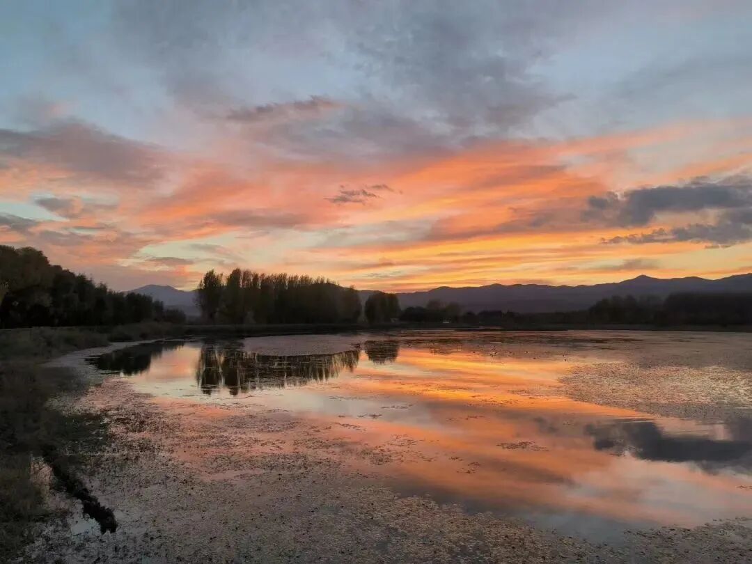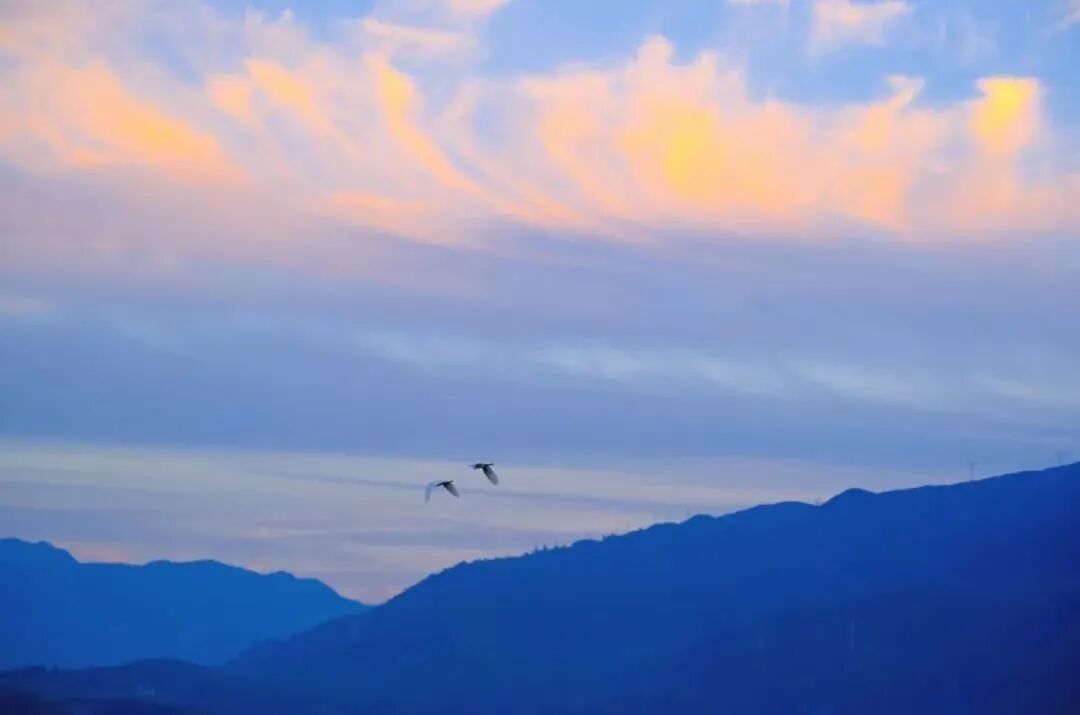 初冬的傍晚,云南省大理白族自治州剑川县剑湖之畔落霞满天,候鸟在霞光中掠过湖面,目之所及皆是“落霞与孤鹜齐飞,秋水共长天一色”。