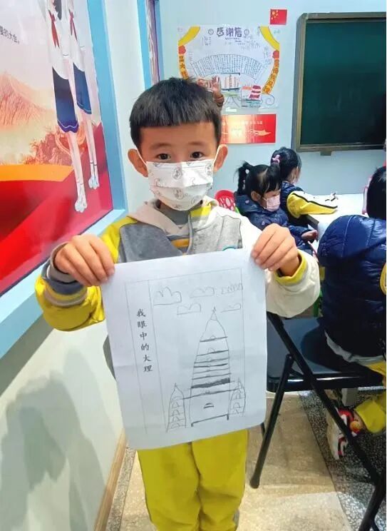 最后,小朋友们在老师的启发下挑选写生对象,用画笔描绘出了自己眼中的大理,并和小伙伴们热情地进行了分享。