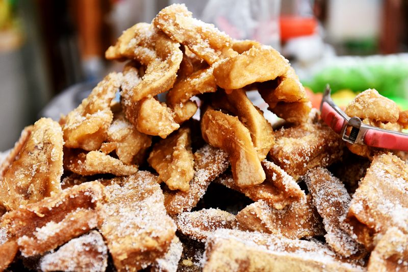 刚走进南诏胡同,一股人间烟火味的气息扑面而来。胡同两边的小道上,各种小摊鳞次栉比,多种类型的咸菜、蜜饯、饵丝、卷粉、小糕,如耙肉饵丝、一根面、青豆小糕等巍山名特小吃应有尽有。