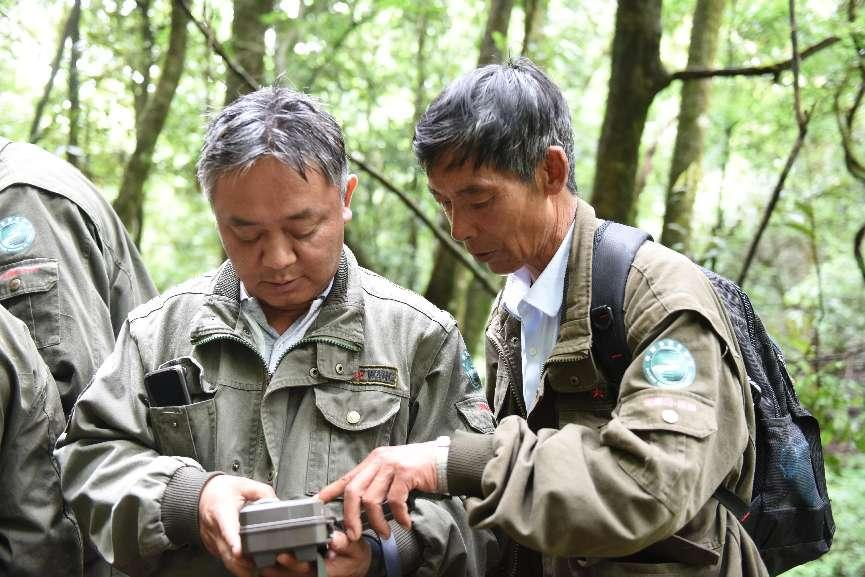 (护林员罗开春查看红外相机 大理州学习平台供图)