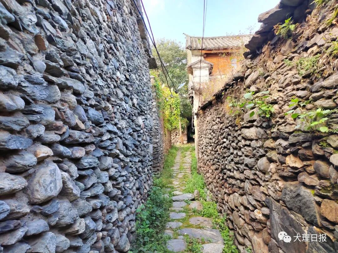 杨氏三甲所在的鹤阳村是一个与苍山近而不狎,与洱海远而不疏的中间区域,每一颗石头都和苍山有着莫大的关联,每一股溪流都与洱海暗通款曲,或者说,这里的墙上藏着密钥,石砖瓦台,石头和草都是收放由人的故事。对面逾墙的树草跟石头应该是交浅的新识,青石未出口的话,我见过你父辈枯发上窜飞的野鸦,也被你丰肥滴淌的绿意洗过昏花的双眼,如果墙上有字,应该写:苍山下的无言之美。杨氏三甲的院门口,石板上的绒苔是神明恋世的凡心,石板下盈涌的清水是苍山偏爱的私心,假如有多余的注释,大概是:万物容融、天地相合。水边有石垒的台案,有人把随身物暂歇在台上,抬头是几户民居,院墙上有齐整书写的村约,阳光就权作是天地编织人情人事余下的手温。