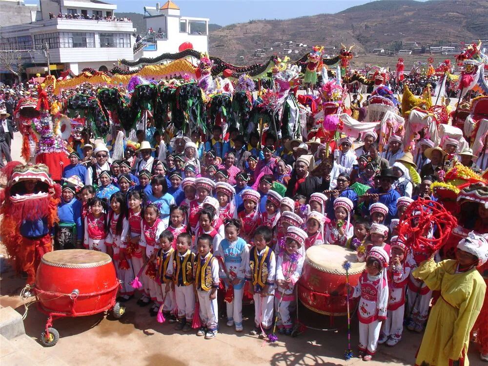 每年正月初七是太极山庙会,朝山礼拜、踏歌赛唱的人四方汇聚于此,花灯、打歌,各展风采,热闹非凡,山间的欢笑顺着桂花箐,一路汇入亚溪河。