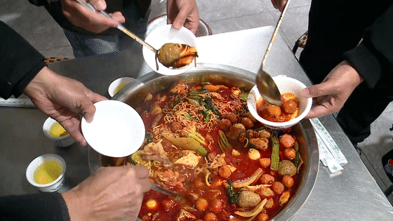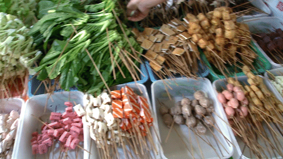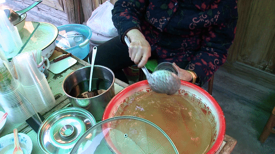 涮菜与火锅相比吃起来更加方便,老板娘每天现炒底料,然后与骨头汤均匀混合,顾客挑选好自己喜欢的菜品后放入锅中煮。待菜煮熟后捞起来将其从竹签上退下来,放上酱油、辣椒、花生等配料,最后浇上汤汁,一份包含浓浓乡愁的涮菜便端到了巍山人的“心里”。