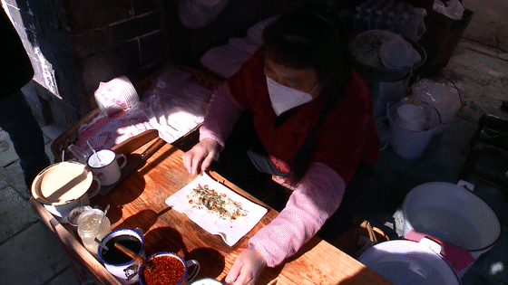 巍山卷粉讲究一个新鲜,不论春夏秋冬,一年四季,都是现做现卖。城内随处可见卷粉摊子和小店,随意走进一家,老板便会手脚麻利地将卷粉放到砧板上,“噌噌噌”切好放进碗里,再放上各种调料,保准你吃完一碗还想再来一碗。当然,你也可以将卷粉铺开,把各种佐料放好再卷起来吃,还是一样的美味。