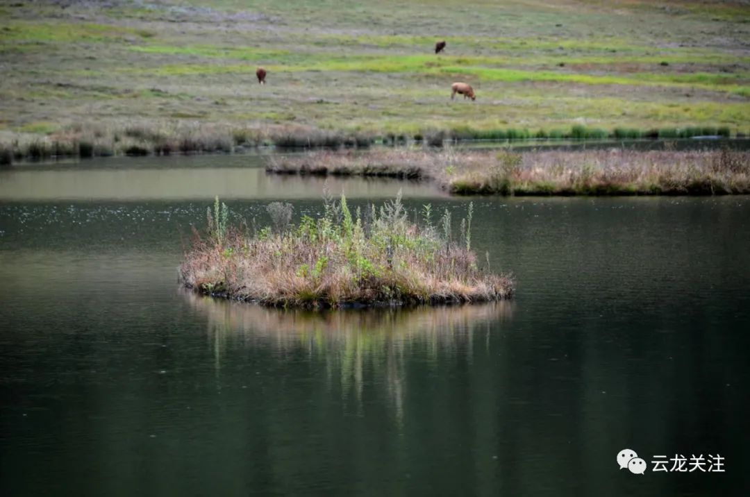犹如绣毯草甸中央有个大水塘微风拂来