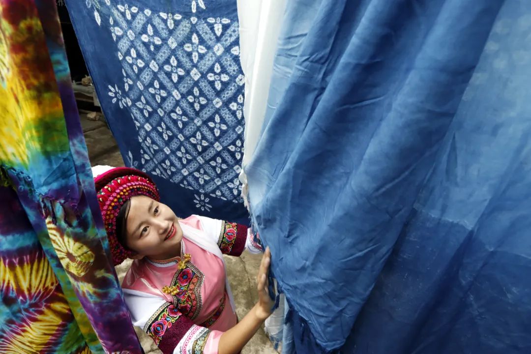 大理的人间烟火如果有颜色那里面一定有扎染的蓝扎染伴随着大理人的一生以针为笔,以线为墨一笔一笔描绘着大理人的生活。