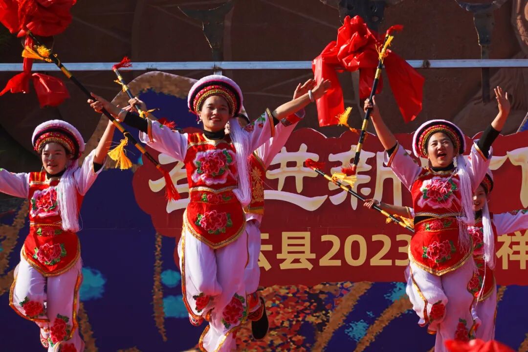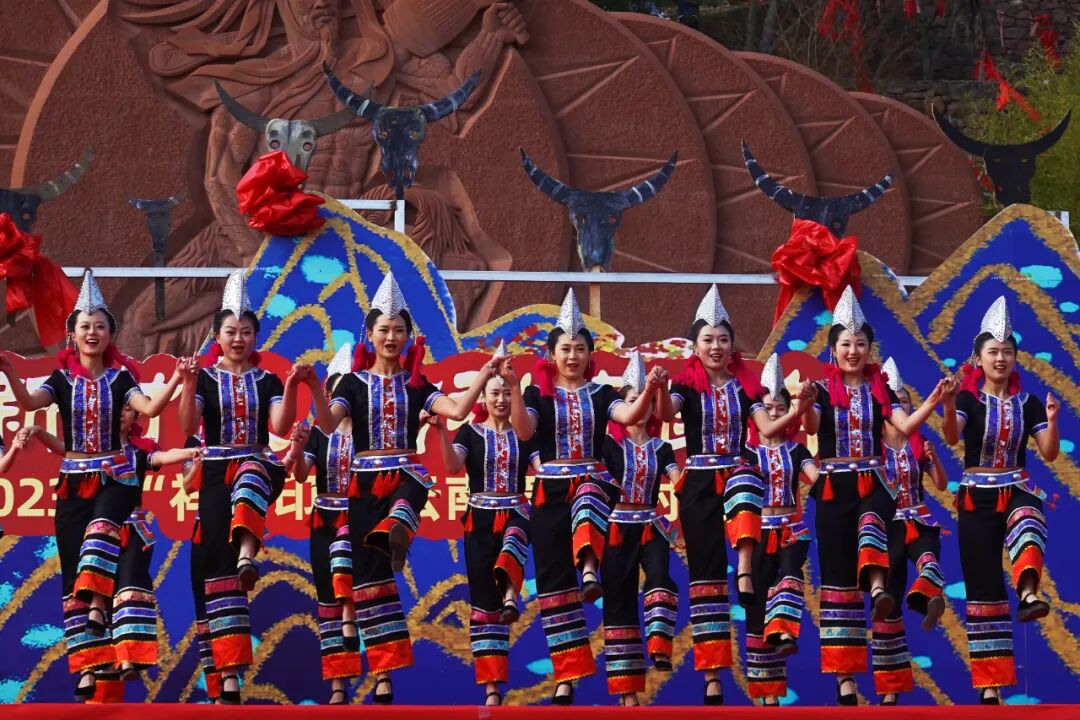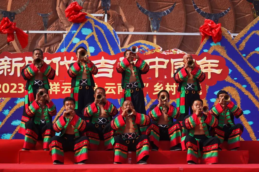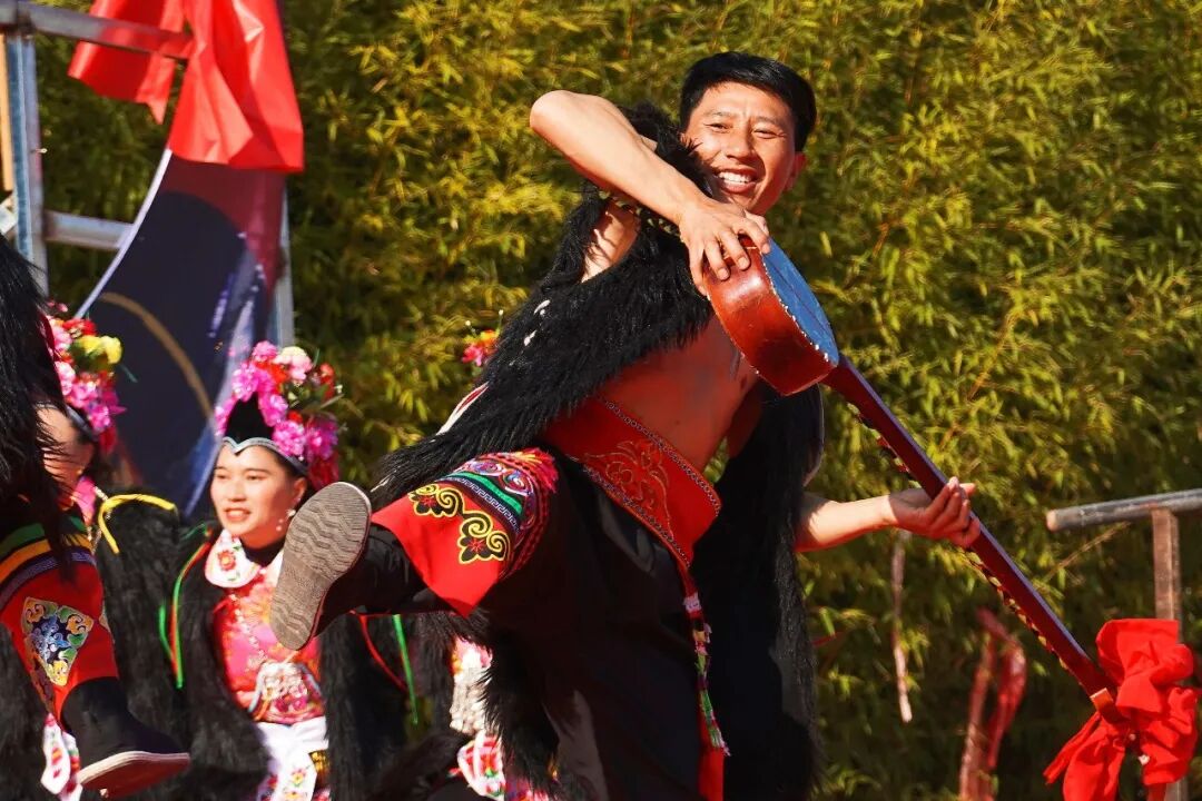 当《过山号》的“呜呜”声响彻山林,祥云“村晚”的帷幕便缓缓拉开。人们身着节日的盛装欢歌,洋溢着春天的喜悦热舞。