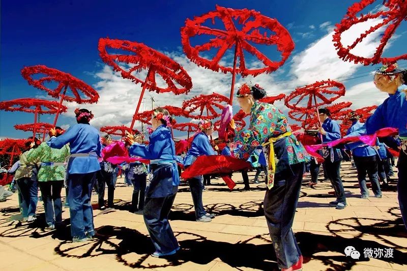 弥渡花灯是云南花灯九大派系之一,素有“云南花灯比山茶 弥渡花灯别样红”的美称,在云南花灯大家庭中,独树一帜,弥渡花灯戏被命名为国家级非物质文化遗产。弥渡被誉为“中国花灯之乡、中国花灯艺术之乡”。在弥渡,流传着“十个弥渡人,九个会唱灯,才进弥渡坝,处处锣鼓声”这样的俗语,充分说明了弥渡花灯广泛而又深厚的群众基础。