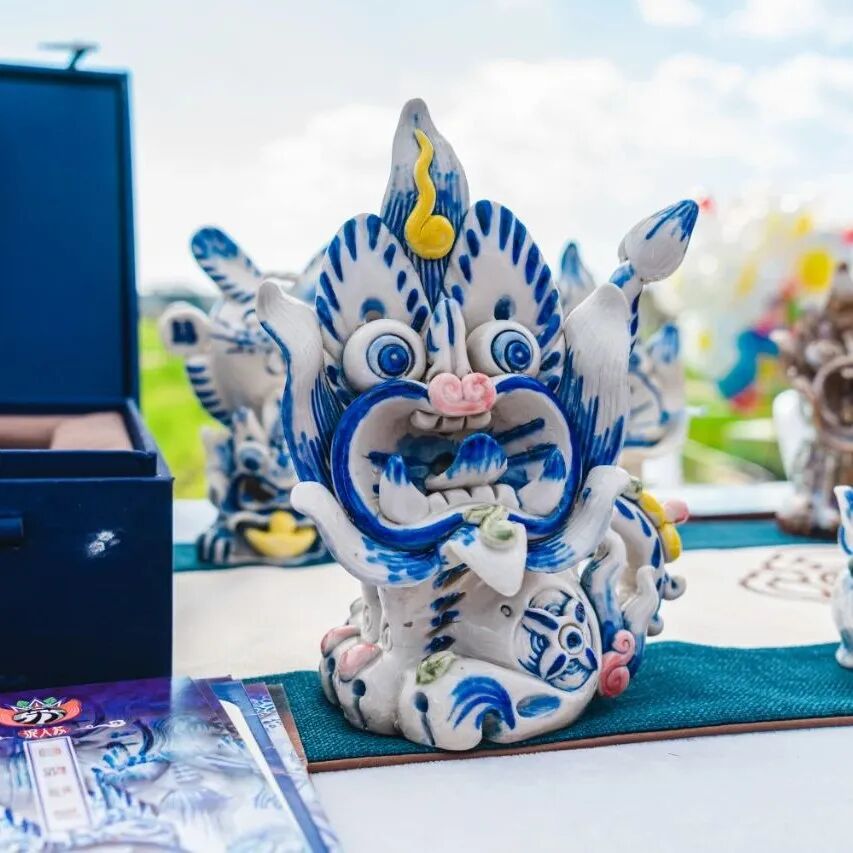 活动现场“瓦猫打卡区”热闹非凡,可爱的吉祥物“小集(吉)”伫立在稻田间,它是由簸箕、笤帚、竹篓、提篮制作而成,憨态可掬的造型吸引众多游客纷纷打卡,成为了集市的“超级明星”,据了解针对本次非遗集市活动,主办方还为二十六项非遗技艺特别制定卡通IP,精巧可爱的贴纸引起游客火热的打卡潮。