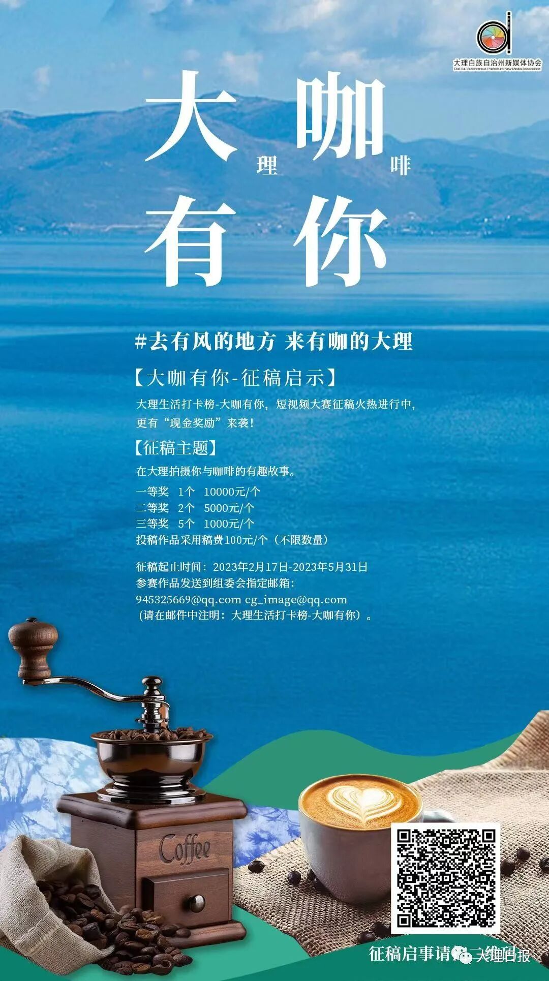 大理生活打卡榜——大咖有你短视频大赛征稿火热进行中,更有“现金奖励”来袭!快抓紧时间参与投稿,一起分享你与大理咖啡的故事,呈现浪漫美好的大理生活。