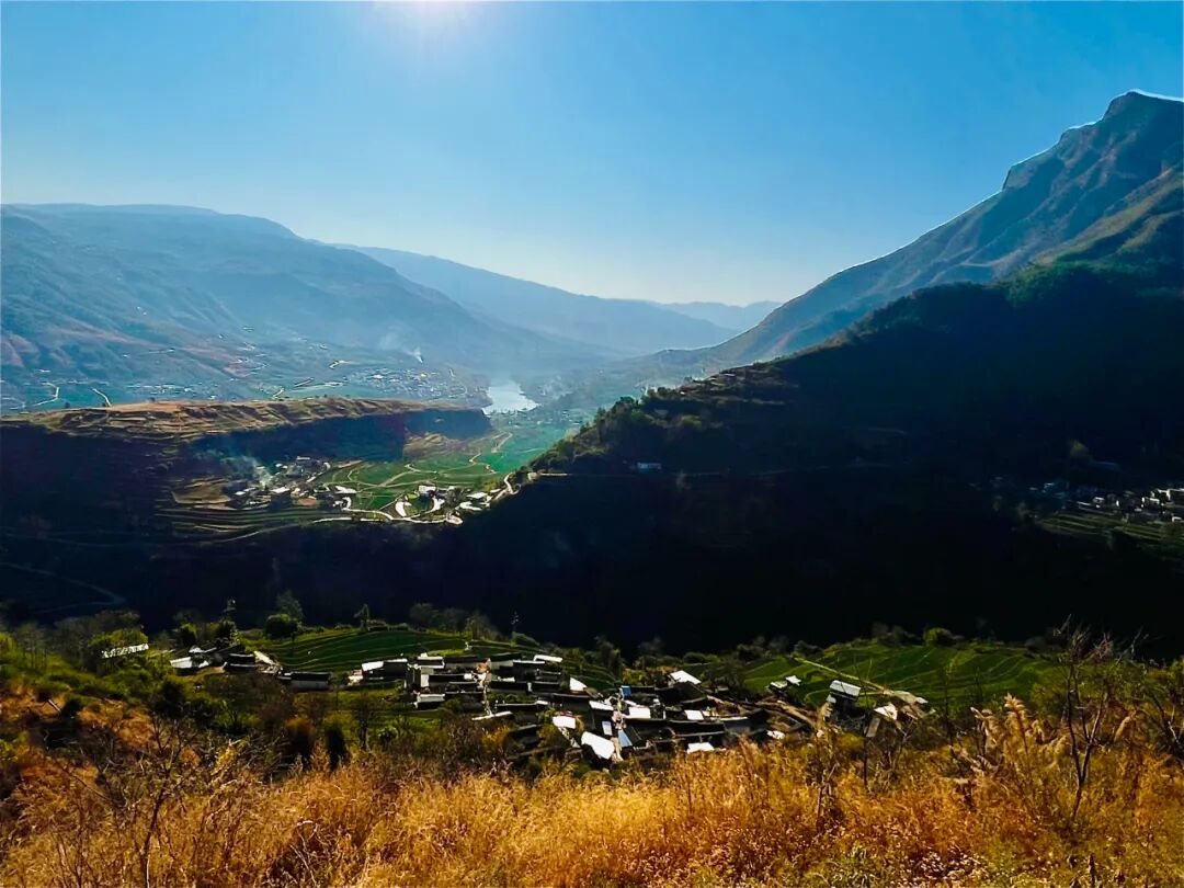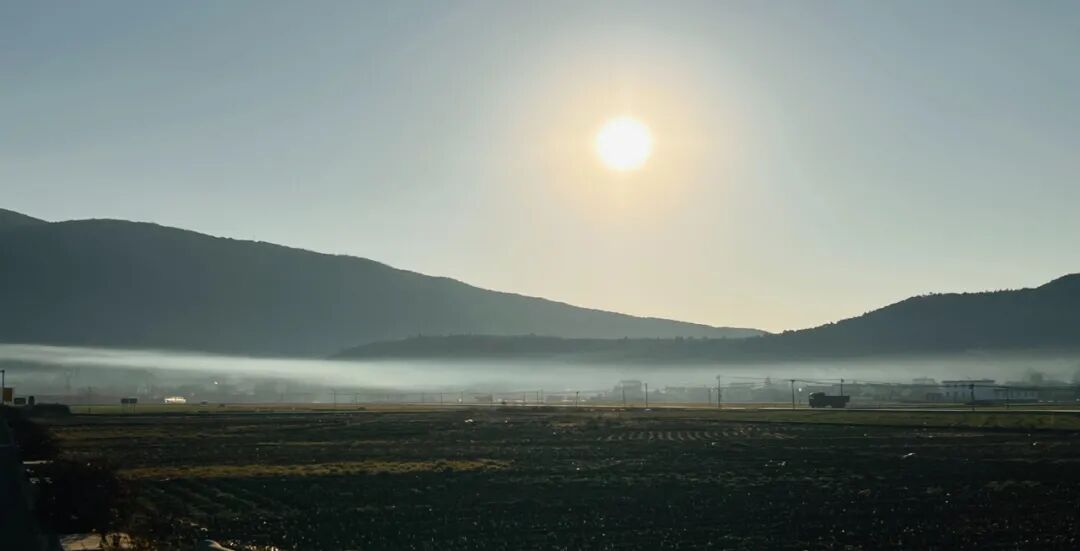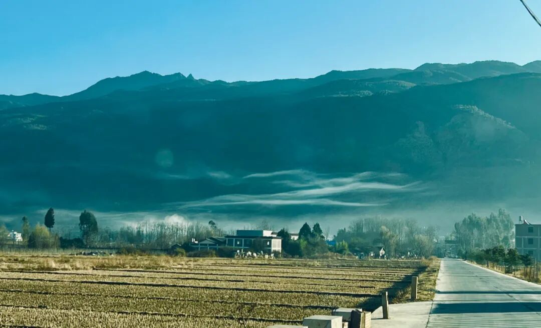 初春,鹤庆,趁着阳光刚刚冲破晨曦,在一片暖融融的光晕中,沿着金中公路一路穿行,生机初显的田野,巍峨连绵的山峦,散落其间的村庄……满眼都是清新可爱的景色。