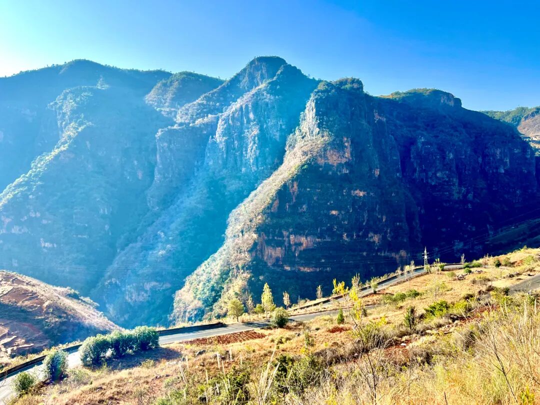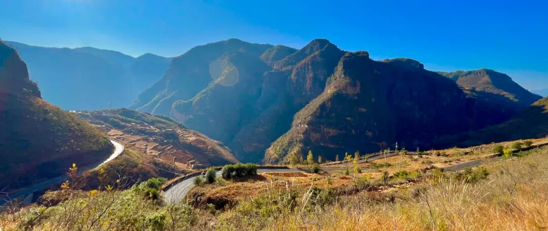 一路向前,盘踞在山岭中的公路如同一条灵动的绸带,随着山势不断蜿蜒,每一个转弯,都将一片新的风景映入眼眸。沿途的山峰,时而舒缓,时而险峻,途经羊桥玄壁之时,更是将大自然的鬼斧神工展现得淋漓尽致。