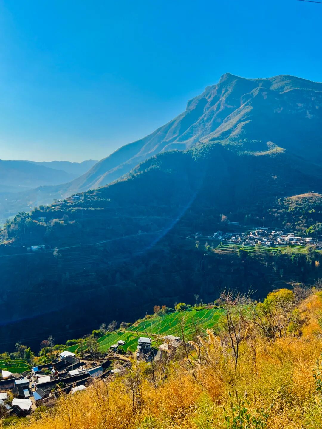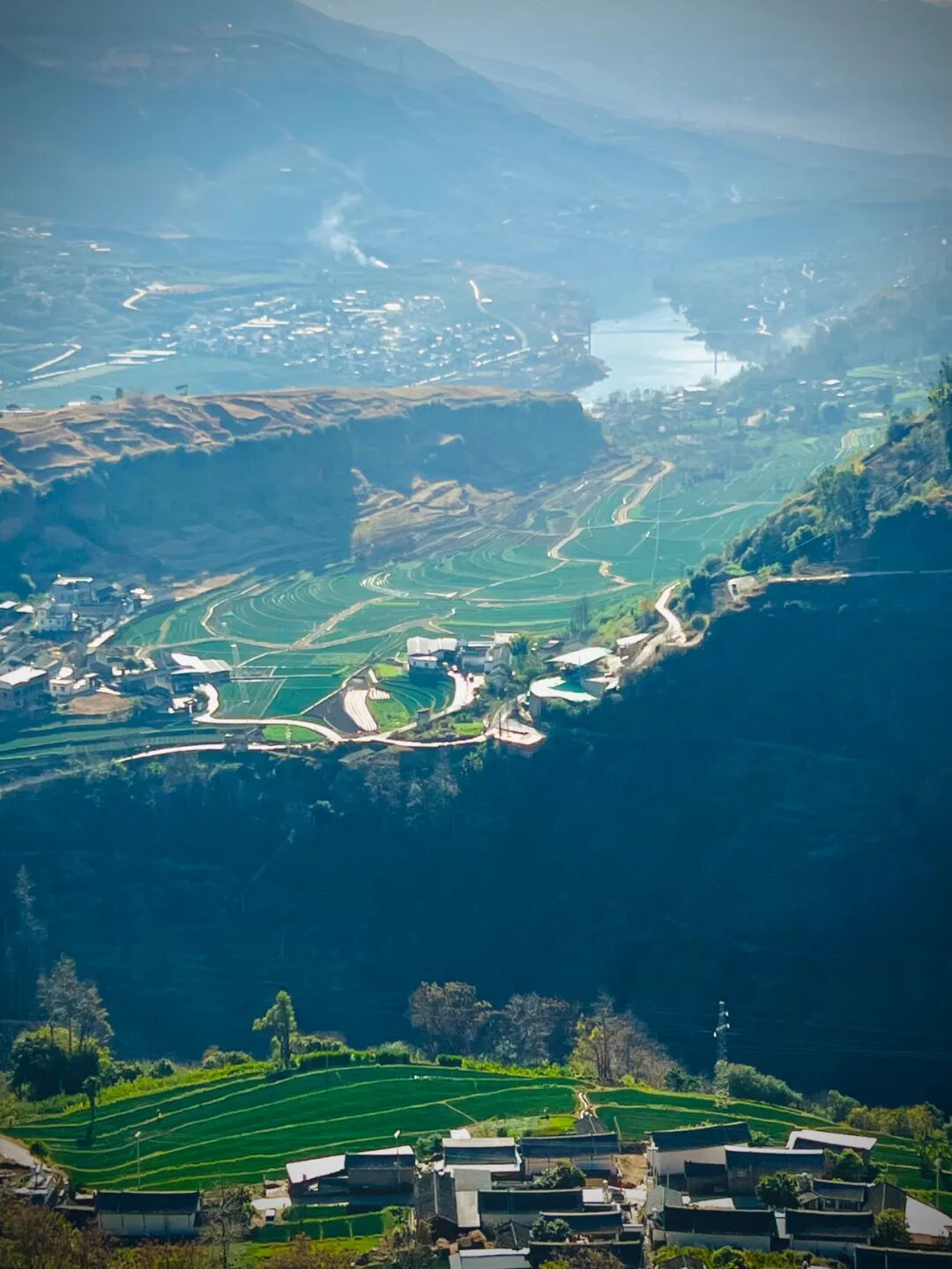 登高远望,开阔的视野带来更为广阔的天地,山河壮丽的豪情与乡愁婉转的喟叹同时涌上心间。早春的作物为田野染上新绿,错落的小村点缀在其中,阡陌纵横,炊烟袅袅,生活最本真的气质扑面而来,一切都显得那么恰到好处。
