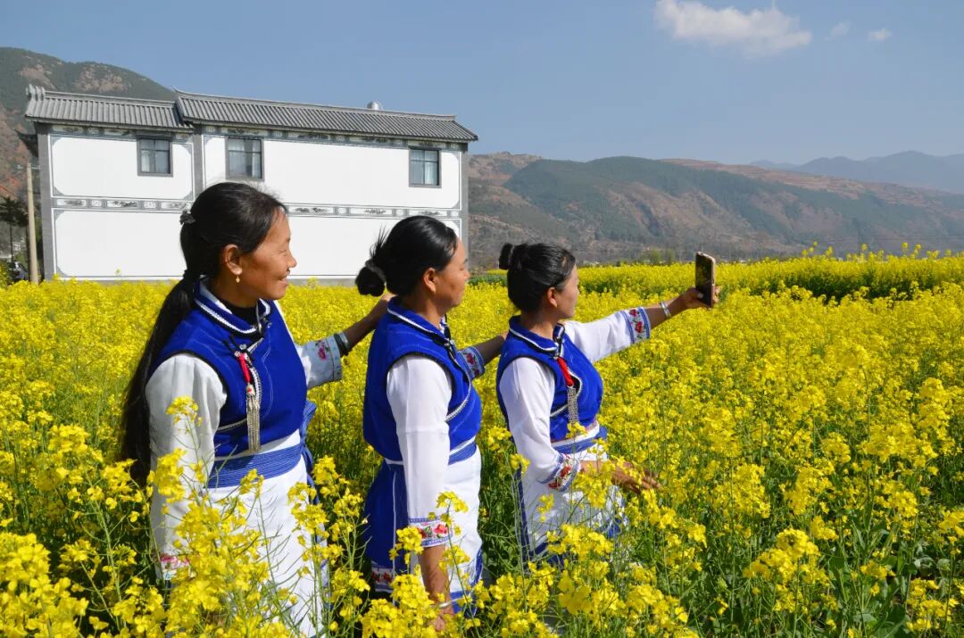 阳春三月,洱源县凤羽镇油菜花竞相绽放,金黄色的油菜花与星罗棋布的白族民居交相辉映,构成一幅多彩的美丽田园画卷,吸引了不少游人纷纷走出家门踏青赏花,感受春天之美。