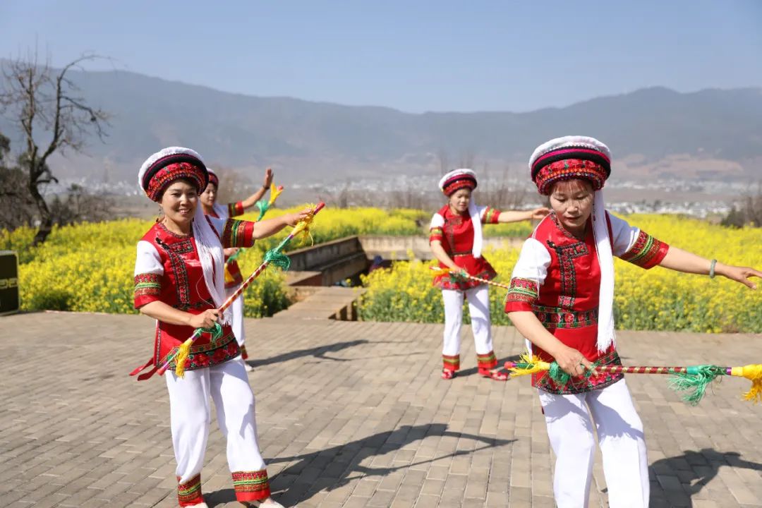 白族传统舞蹈霸王鞭,也是白族非遗项目之一,把春天对美好的寄托,通过传统的方式延续下去。