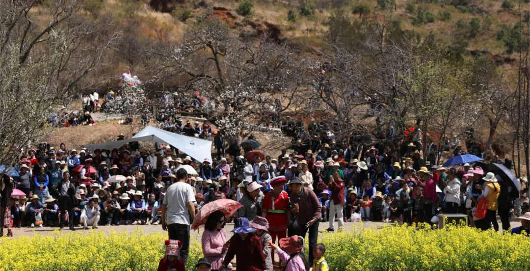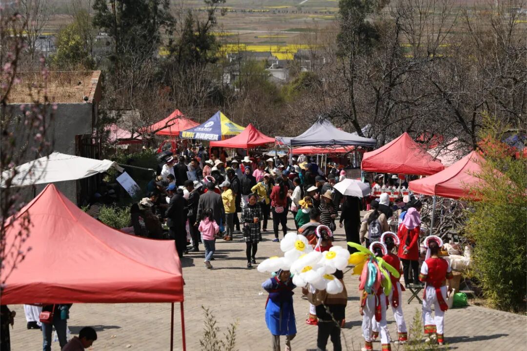 3月4日至5日,稻田剧场举办了一场以梨花为主题的集市活动。来自佛堂村、江登村、马甲村、草甲村等村落的村民聚集到古梨园空中稻田剧场。在这春暖花开之日,白族传统集市上演一出好戏。
