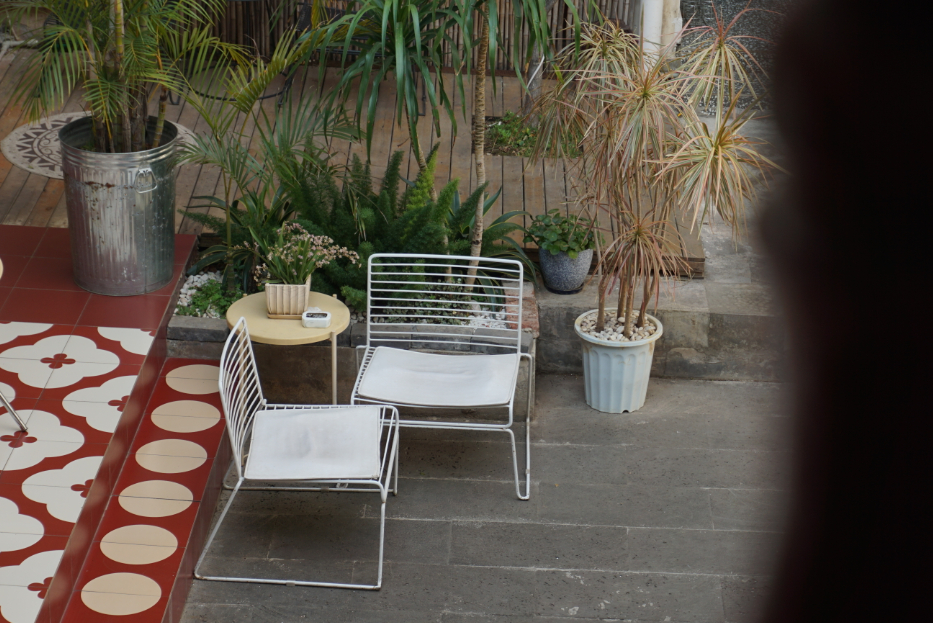 进门之后映入眼帘的是白墙、青瓦、红楼以及茂密生长的绿植。时光咖啡的主理人滨仔来自四川,他介绍,能在闹市里找到这样一栋保存完好的白族民居非常难得,因此在装修上,他保留了原有的主体结构,在延续白族传统的基础上融合了新派的装修风格。