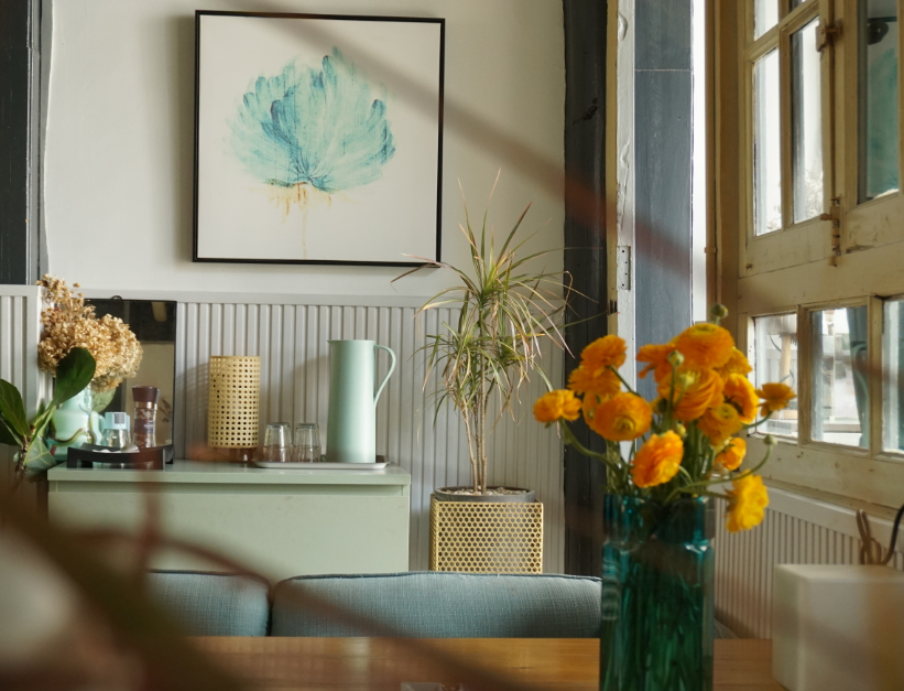 时光咖啡共有两层,全部都由滨仔自己设计完成。“我非常喜欢美的东西,不管是家居设计还是咖啡与甜点的装饰摆盘,我都希望能够把美呈现到每一位顾客面前。”滨仔笑着说,“当时装修师傅感到很头疼,因为我每个细节都想做好,就不停地在调整设计。”
