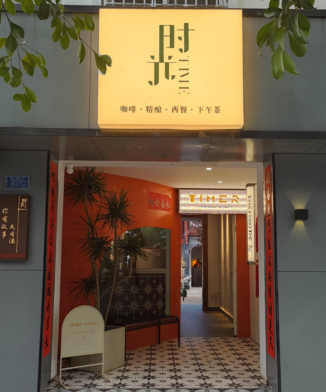 在大理下关城区的主干道人民路上,时光咖啡就这样安静地隐藏着,路过的人如果不仔细观察很可能就此错过它。你很难想到这不起眼的店面之后竟然有着一个由“三坊一照壁”白族民居改造而成的小院。
