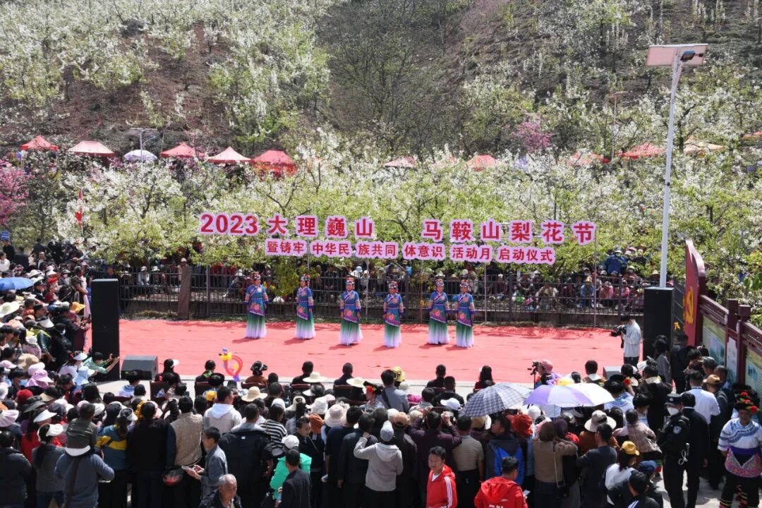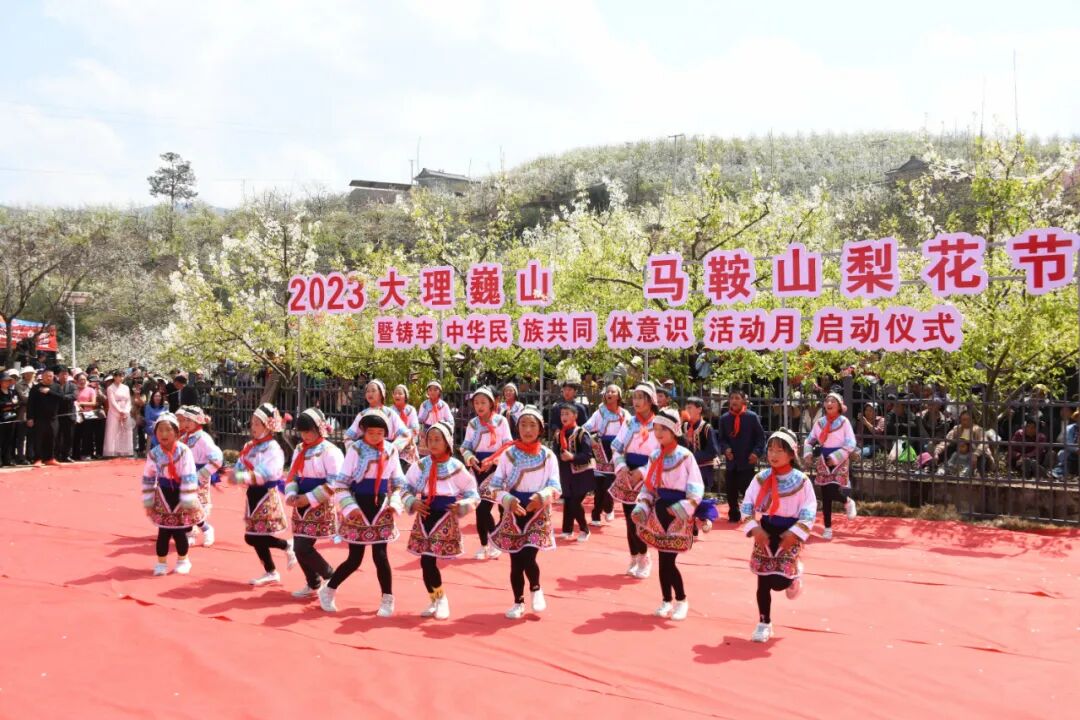 县委副书记杨柱生宣布2023大理巍山•马鞍山梨花节暨铸牢中华民族共同体意识活动月启动仪式开幕,县领导王利鱼、周婵媛、左士尧、杨春玉出席开幕式,马鞍山乡党委领导致辞。