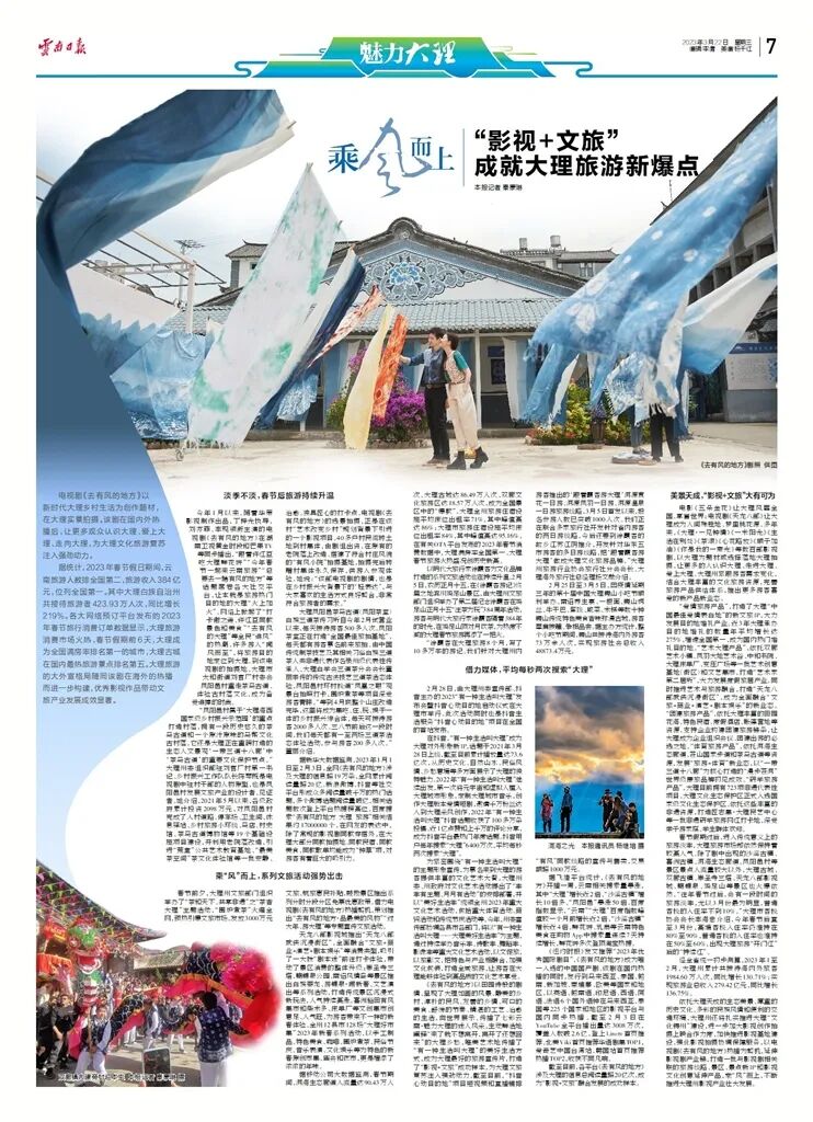 截至目前,各平台《去有风的地方》涉及大理的信息总阅读量超20亿次,成为“影视+文旅”融合发展的成功样本。