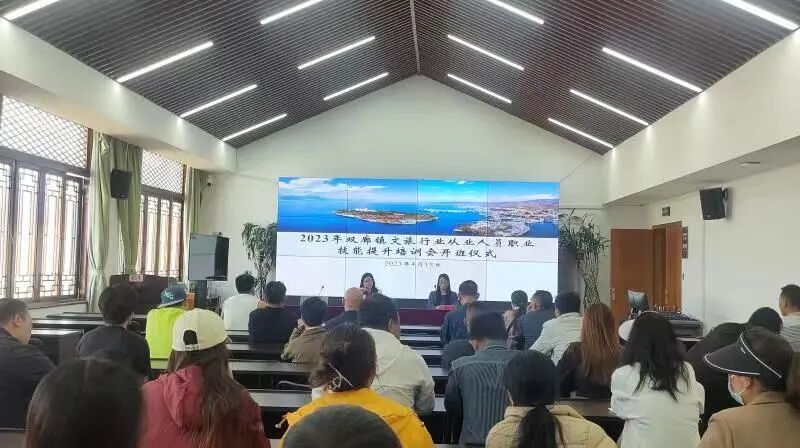 “五一”和“三月街”民族节即将来临,为推动党建引领文旅行业健康发展,以法治宣传带动行业自律,进一步提升从业人员职业技能水平和服务能力,营造良好的旅游市场环境,2023年4月18日,大理市双廊镇人民政府举办2023年双廊镇文旅行业从业人员职业技能提升培训会,本次培训邀请到大理州旅游行业协会导游分会会长钱秀珍、大理大学经济管理学院旅游系副教授刘文颖、全国旅游民宿等级评定和复核专家赵俸昀等行业优秀老师进行授课。餐饮、客栈品牌店铺和民宿、客栈新办证经营户负责人以及年内收到投诉的经营户、从业人员等50余名学员参加培训。