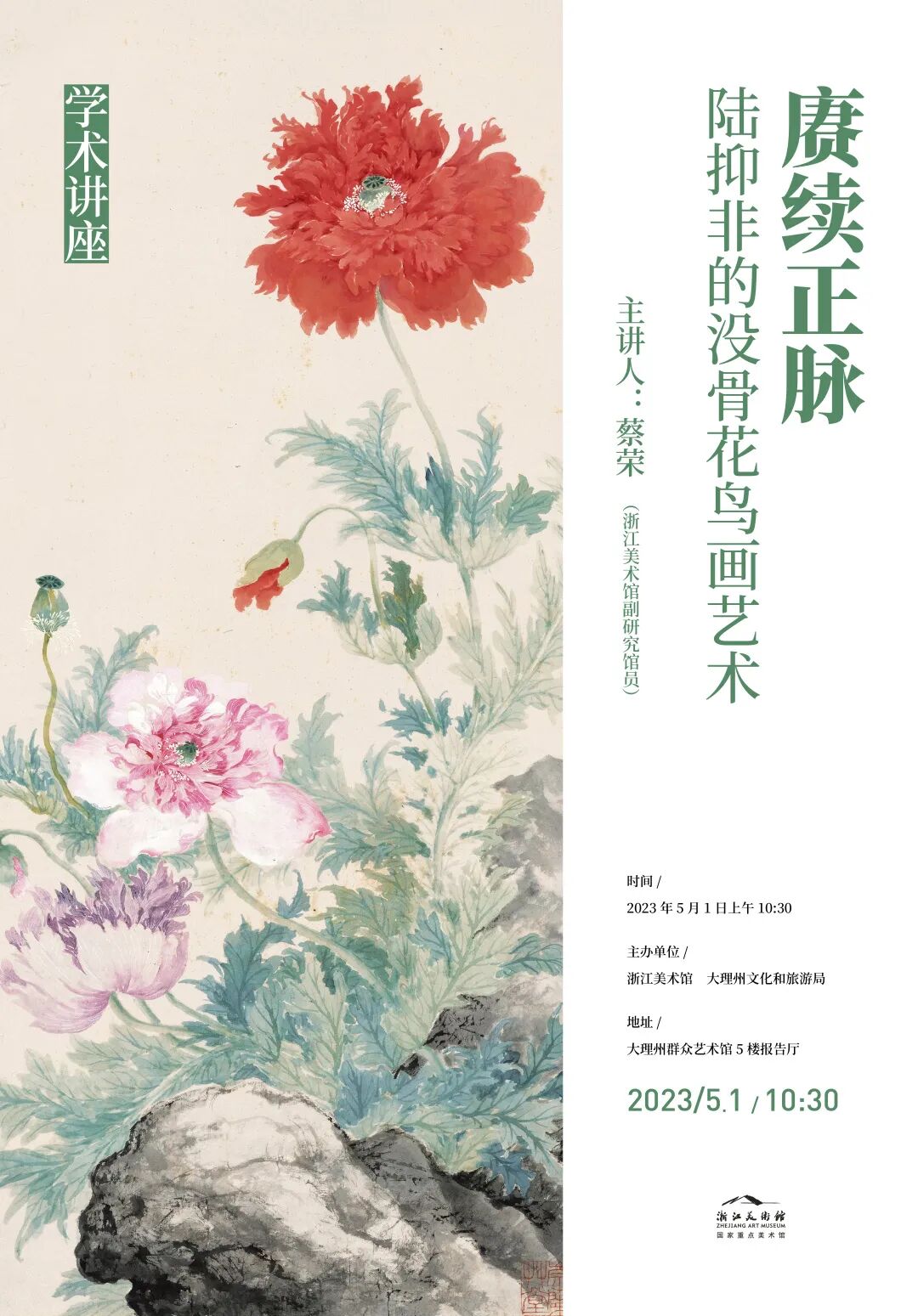 为进一步推动“江南春——陆抑非花鸟画创作与教学作品巡展(云南站·大理)”的全民艺术普及工作,强化社会艺术普及服务,增强社会影响力。浙江美术馆、大理州文化和旅游局将于5月1日上午举办公益学术讲座“赓续正脉——陆抑非的没骨花鸟画艺术”。