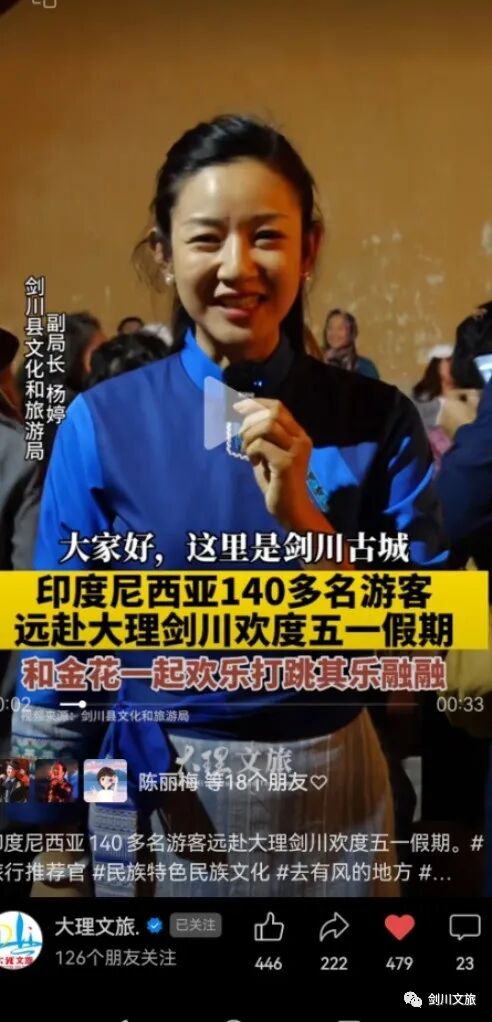 节日期间,通过移动短信平台向外地入境的游客发送欢迎词、旅游温馨提示和消防安全提醒短信共41500条。“剑川文旅”视频号、“今日剑川”视频号和抖音号平台共发布19条节日宣传引流短视频,播放量达113.8万次。抓住沙溪高速通车的契机,紧紧围绕“吃住行游购娱”各要素,向网友精准推介“年味饵丝”“围炉煮茶”等剑川特色和新兴业态,传播国内外游客到剑川旅行的真实感受,形成了良好的推介引流效应。