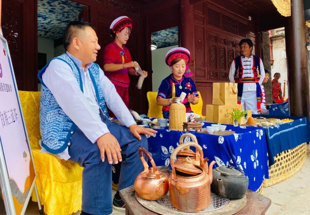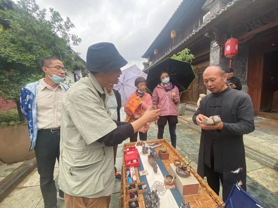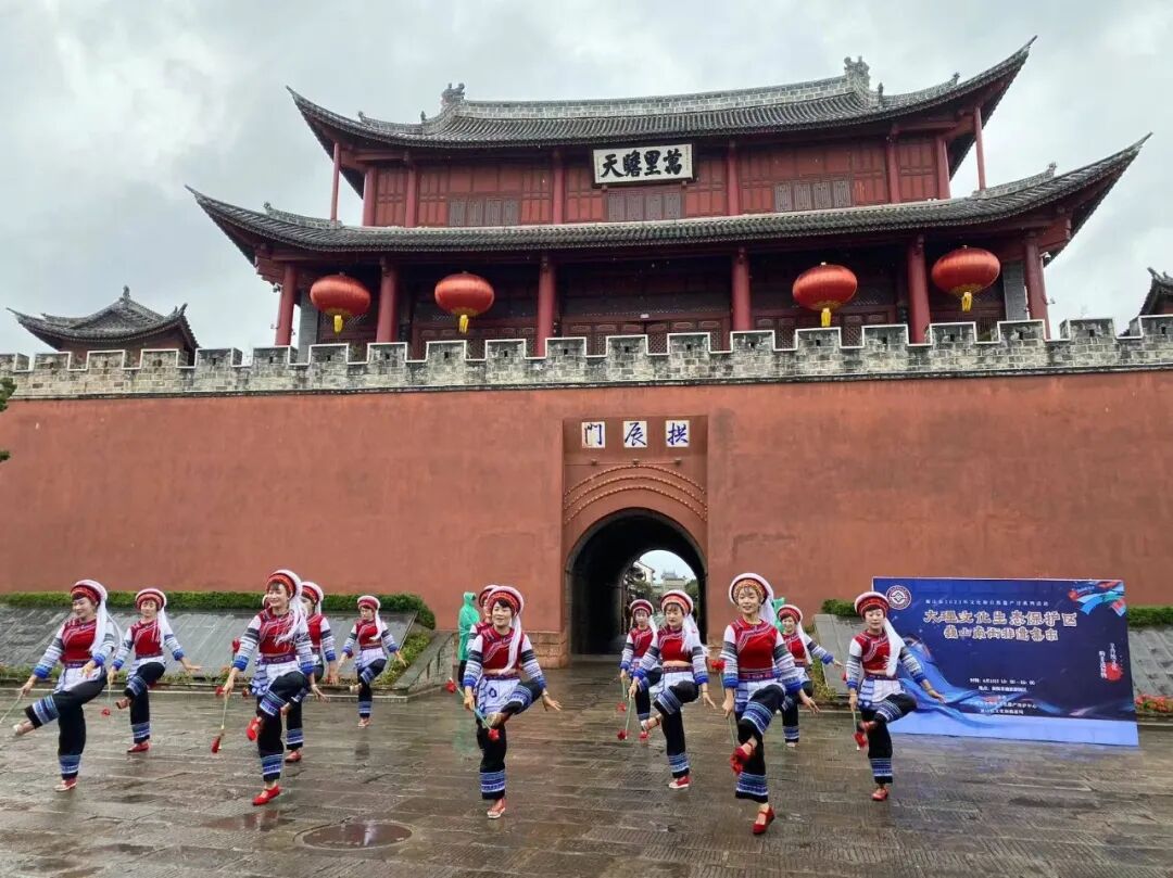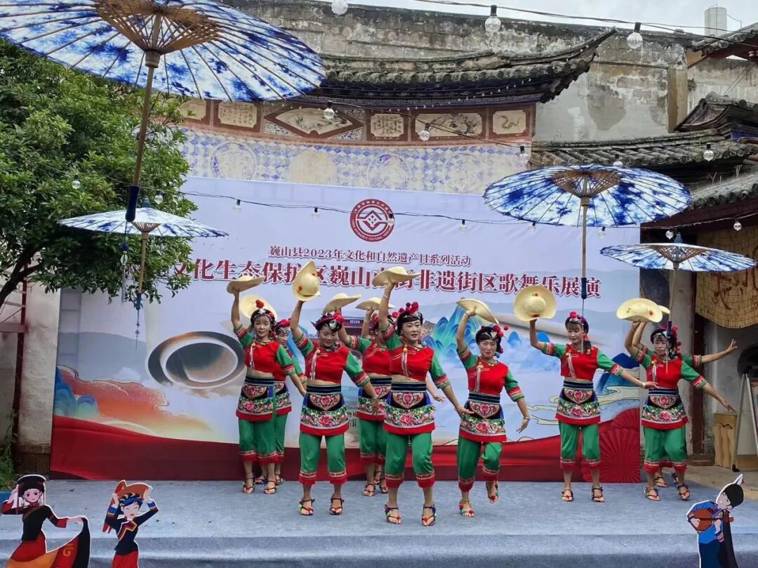 同时,在南街的“非遗+旅游”示范点,洱源县斯甘俏艺术团的金花打起霸王鞭、敲起八角鼓,巍山县小三家村彝族打歌传习所的东山打歌队,唱起打歌调,耍起大刀舞,大理文化生态保护区巍山南街非遗街区歌舞乐展演持续一个小时,现场掌声不断。这次活动,汇聚了大理市、剑川县、洱源县、巍山县的近60位非遗传承人(群),他们在非遗集市中,不仅展现了技艺、加强了交流,也付出了汗水、留下了回忆。这不仅是一次共同庆祝2023年“文化和自然遗产日”的聚会,也是一次充分展现大理文化生态保护区建设成果的盛会。