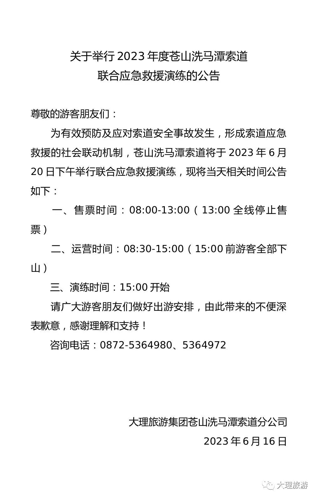 关于举行2023年度苍山洗马潭索道联合应急救援演练的公告